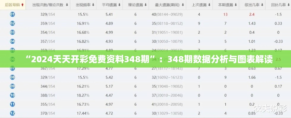 “2024天天开彩免费资料348期:348期数据分析与图表解读”不仅为彩民朋友们提供数据支持,更是您通往梦想大奖的明灯,相信通过数据和科学的指引,每个人都能更接近大奖的梦想。