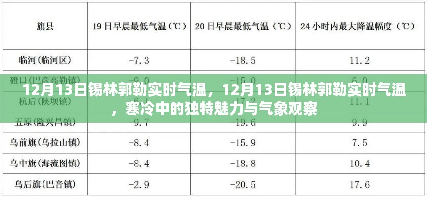 随着冬季的脚步日渐临近,气温逐渐降低,而位于内蒙古自治区的锡林郭勒盟却依然保持着其独特的魅力,本文将聚焦于一个特定的日子——12月13日,带您领略锡林郭勒的实时气温情况,深入了解这片土地在寒冷中的独特风情与气象特点。