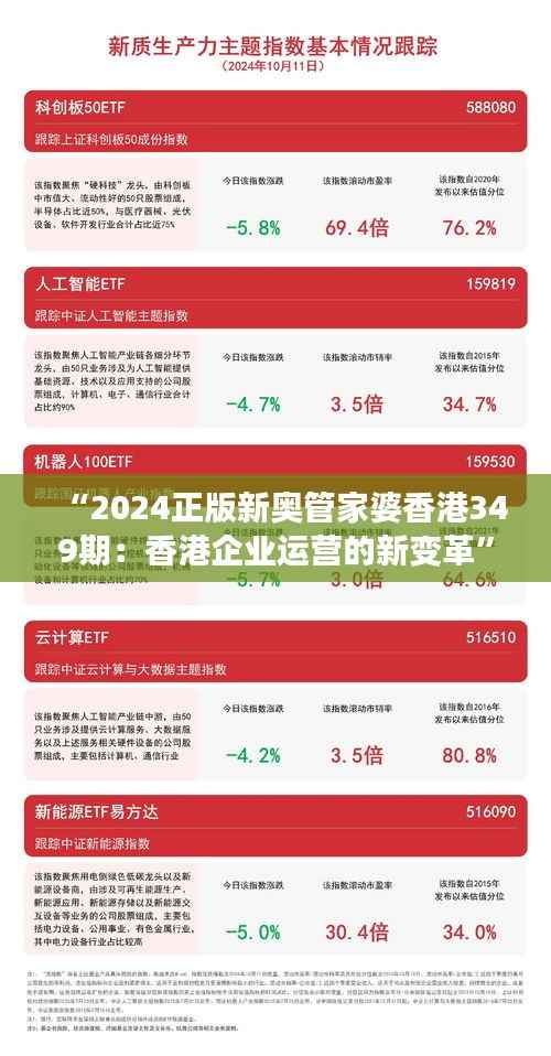<p>在全球化的浪潮下,香港作为国际金融中心和重要的商贸枢纽,其企业运营面临着前所未有的挑战与机遇,随着科技的飞速发展以及市场需求的日新月异,香港企业亟需适应新形势,实现转型以应对日益激烈的竞争,本文将深入探讨“2024正版新奥管家婆香港349期:香港企业运营的新变革”,分析香港企业如何借助新技术和新策略,实现企业运营的新突破。</p>