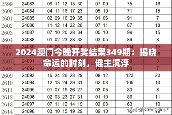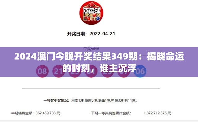 2024年,澳门博彩业迎来了新的高潮,今晚开奖结果349期,将是揭晓命运的时刻,澳门,作为亚洲博彩业的龙头,不仅吸引了全球众多游客和博彩爱好者的目光,更不断推动澳门地区的经济繁荣与中国特区政府的形象重塑,本篇文章将详细分析本期开奖结果,探讨其对澳门政策发展的影响。
