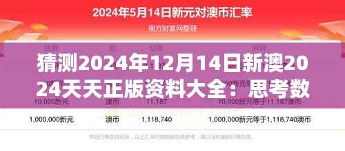 <p>随着数字化时代的深入发展,资料库的管理与运营正经历前所未有的变革,本文旨在深入探讨2024年12月14日新澳2024天天正版资料大全在数字化转型背景下,对资料库领域可能产生的深远影响,我们将从资料库的组织、存储、检索以及用户互动方式等多个维度进行分析,以期为未来的政策制定提供有价值的参考。</p>