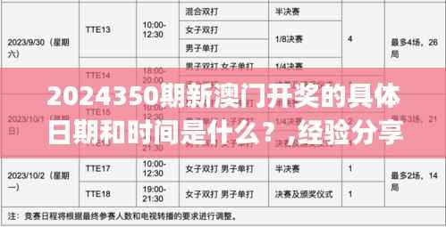 本文将深入探讨“2024350期新澳门开奖”的具体日期和时间,以及相关的政策和技术细节,对于广大彩票爱好者和关注澳门博彩行业的读者来说,这是一个备受关注的话题,本文将为您提供最新、最全面的信息,以便您及时了解最新的开奖动态,更好地参与其中。