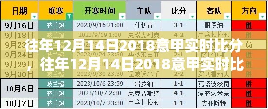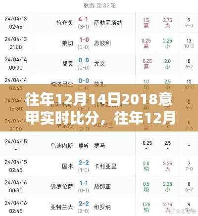 在足球赛事激烈的战场上,实时掌握比赛比分对于球迷和体育爱好者来说至关重要,本文将聚焦于“往年12月14日2018意甲实时比分”这一产品,为广大读者带来详尽的评测与介绍,通过本文,您将全面了解到该产品的特性、使用体验、与竞品的对比、优点和缺点,以及目标用户群体的分析。