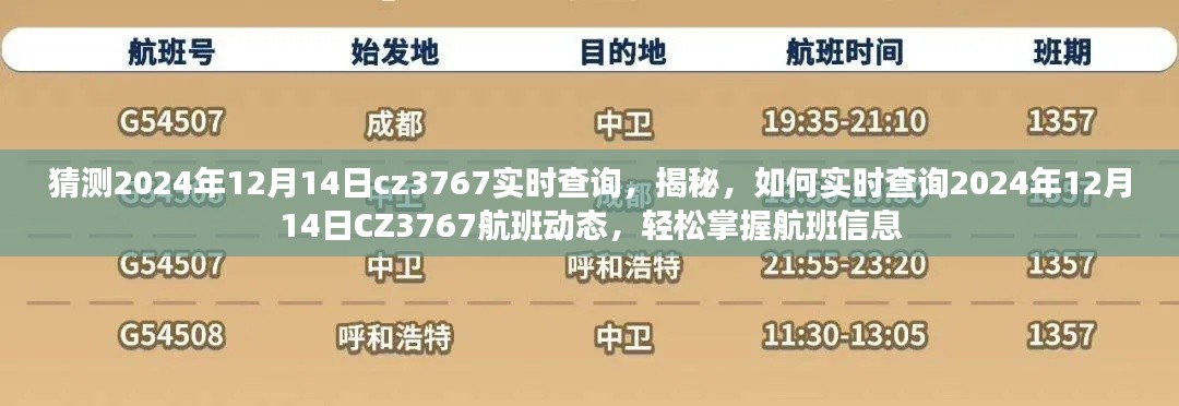 随着科技的飞速发展,人们对出行的需求与日俱增,实时掌握航班动态已成为旅客出行的必备技能,本文将为您详细介绍如何提前预测并实时查询2024年12月14日CZ3767航班的动态信息,让您轻松掌握航班情况,出行更加无忧。